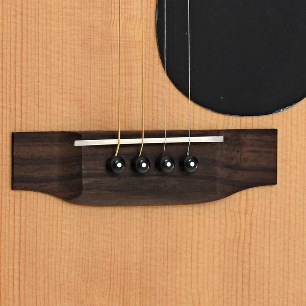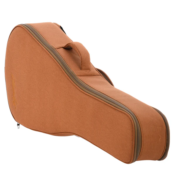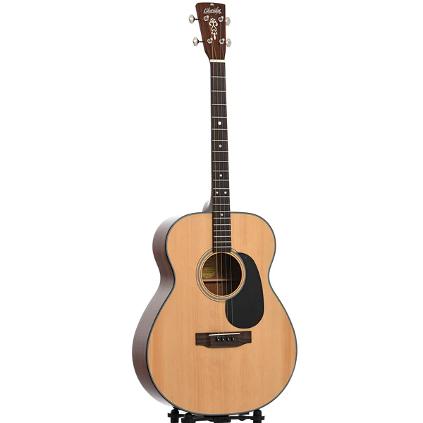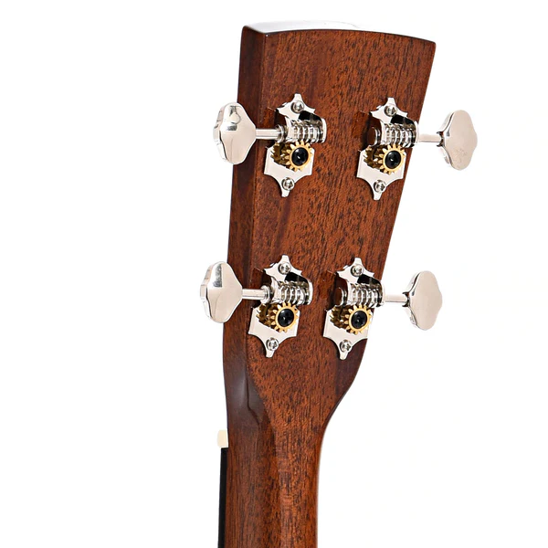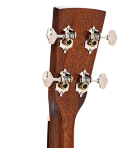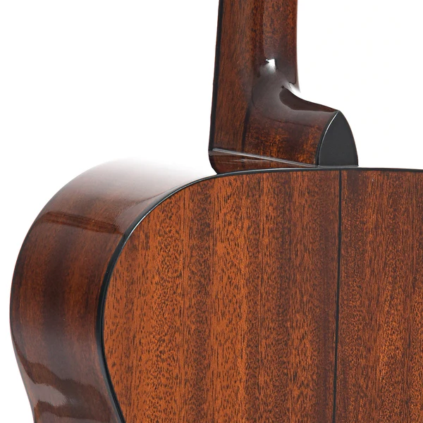 Il top in abete Sitka massello garantisce un’ottima proiezione, mentre il mogano selezionato per fasce e fondo aggiunge calore e profondità. Il manico in mogano è comodo e scorrevole, con una tastiera in Palissandro Santos arricchita da intarsi in madreperla. Il tradizionale bracing a X offre un bilanciamento tonale eccellente, rendendola ideale per performance sia unplugged che amplificate.