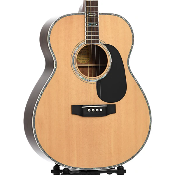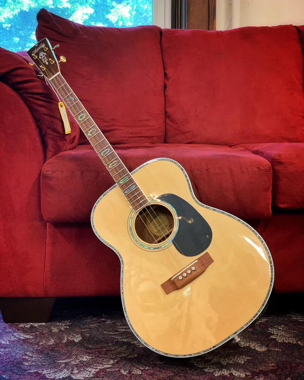 La tastiera in palissandro Santos è arricchita da intarsi esagonali in abalone, conferendo un tocco estetico raffinato. Le meccaniche Gotoh placcate in oro garantiscono un’accordatura precisa e stabile. Grazie al bracing tradizionale X-Bracing, questa chitarra è perfetta per chi cerca versatilità sonora e un feeling premium.