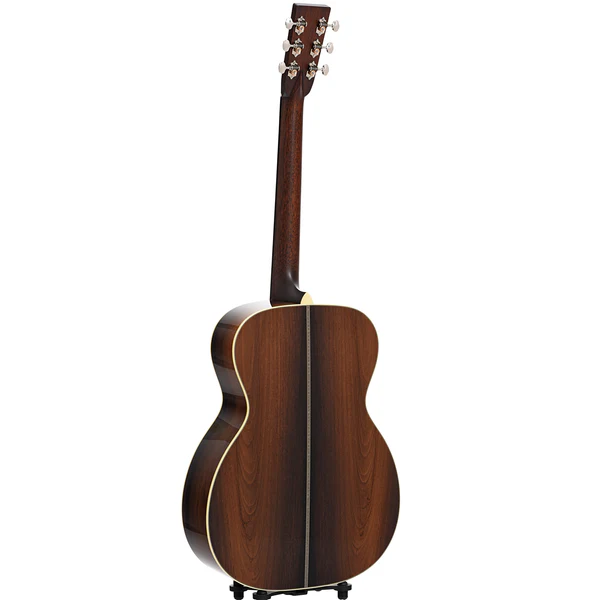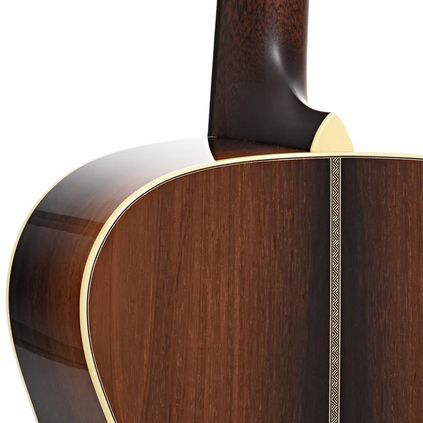 Questo strumento esclusivo combina un top in abete Adirondack selezionato con fondo e fasce in prezioso palissandro brasiliano, offrendo un suono profondo, caldo e cristallino con una proiezione eccezionale. Il bracing X da 1/4″ dona una risonanza superiore, caratteristica rara nelle chitarre a scala corta, garantendo al contempo maggiore sensibilità al tocco e una risposta dinamica senza eguali.