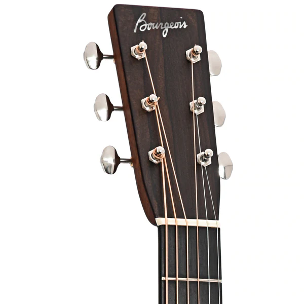 Esteticamente, la Bourgeois Touchstone Series Vintage richiama le chitarre orchestra model introdotte nel 1929, con dettagli classici come il purfling herringbone, la rosetta a strisce bianche e nere e i pin del ponte in ivoroid. La finitura lucida e gli intarsi sulla tastiera aggiungono un tocco di eleganza, mentre la costruzione solida garantisce una durata nel tempo.