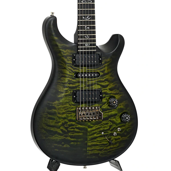 La PRS Wood Library Modern Eagle V 2023 è una chitarra di altissimo livello, pensata per i musicisti più esigenti e gli appassionati di strumenti da collezione. Il suo design premium combina estetica e funzionalità, con una finitura Satin Shaded Jade che esalta le venature dell’acero quilted 10 Top. Il corpo in frassino di palude garantisce leggerezza e una risposta timbrica bilanciata, mentre il manico in acero figurato con profilo Pattern Thin offre velocità e comfort eccezionali.