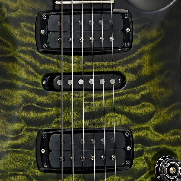 Dal punto di vista elettronico, la Modern Eagle V è equipaggiata con una configurazione pickup HSH, composta da due TCI humbucker e un single coil NS-01 al centro. Questa combinazione, unita a un controllo di volume e tono (con push/pull per lo split coil), un selettore a 5 posizioni e due mini switch dedicati allo split, offre una gamma sonora che spazia da suoni caldi e corposi a timbriche cristalline e taglienti.