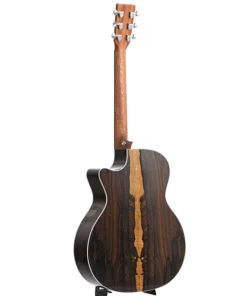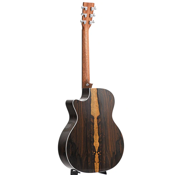 La Martin GPC-13E Ziricote Cutaway rappresenta l’eccellenza nella liuteria moderna, combinando estetica raffinata e prestazioni sonore di alto livello. Il top in abete Sitka massello, noto per le sue qualità risonanti, si abbina armoniosamente alle fasce e al fondo in ziricote, un legno esotico apprezzato per le sue venature uniche e le caratteristiche tonali simili all’ebano e al palissandro brasiliano. Questa combinazione produce un suono equilibrato con bassi profondi, medi definiti e acuti cristallini.