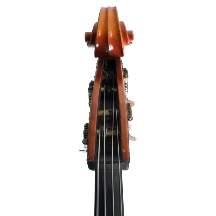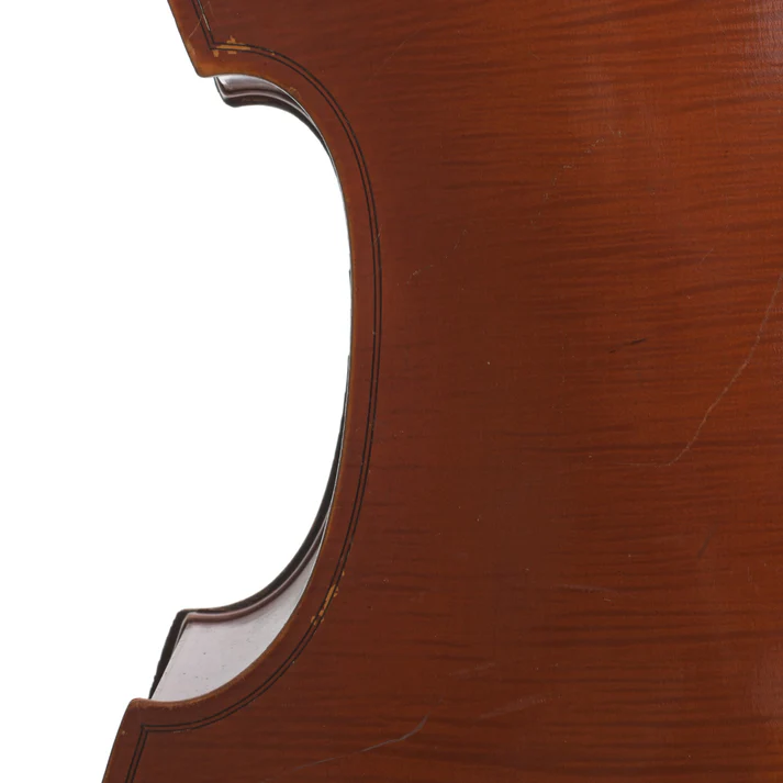 Questo contrabbasso è dotato di un pickup installato, sebbene il suono possa risultare intermittente e potrebbe richiedere manutenzione. La struttura presenta angoli a gamba e intagli a “f” che contribuiscono all’estetica classica dello strumento. Il suono è caratterizzato da una tonalità calda e una proiezione potente, ideale per esecuzioni sia orchestrali che solistiche.
