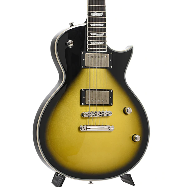 Il manico in mogano a tre pezzi, unito al corpo tramite costruzione Set-Thru, garantisce un accesso agevole ai tasti superiori e una suonabilità fluida. La tastiera in ebano Macassar, con 22 tasti extra-jumbo e intarsi “ESP Flag” in madreperla, aggiunge un tocco di eleganza e facilita l’esecuzione di assoli complessi.