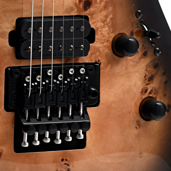 L’ESP LTD H-1001FR è una chitarra elettrica premium progettata per musicisti professionisti. Offre un suono potente grazie ai pickup Seymour Duncan e una stabilità eccezionale con il ponte Floyd Rose 1000SE, il tutto impreziosito da un elegante top in pioppo burl.