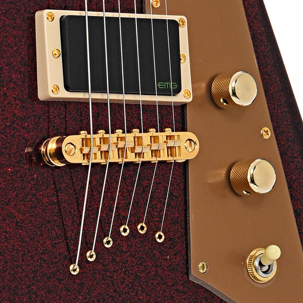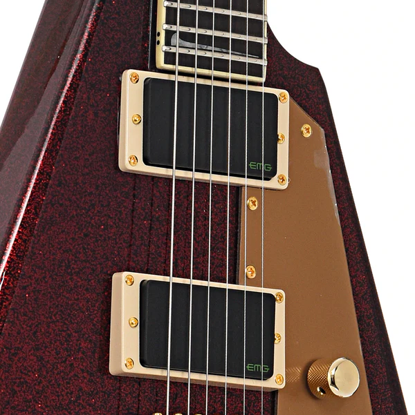 I pickup EMG Bone Breaker, sviluppati specificamente per Kirk Hammett, sono il cuore pulsante della KH-V. Il pickup al ponte BB-B ceramico offre lead nitidi e incisivi, mentre il pickup al manico BB-N Alnico 5 produce toni ritmici morbidi e arrotondati. Questa combinazione permette ai chitarristi di passare facilmente da assoli penetranti a ritmiche potenti con una semplice regolazione del selettore a tre vie.
