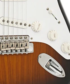 I tre pickup single-coil 70th Anniversary 1954 Strat® catturano l’essenza del suono Fender, offrendo toni brillanti e definiti che spaziano dai puliti cristallini ai distorti grintosi. Il tremolo sincronizzato vintage con sellette in acciaio piegato assicura una stabilità dell’accordatura e una risposta dinamica alle sfumature del tocco.