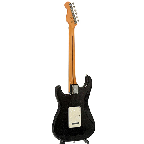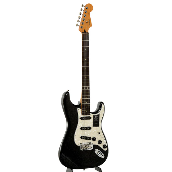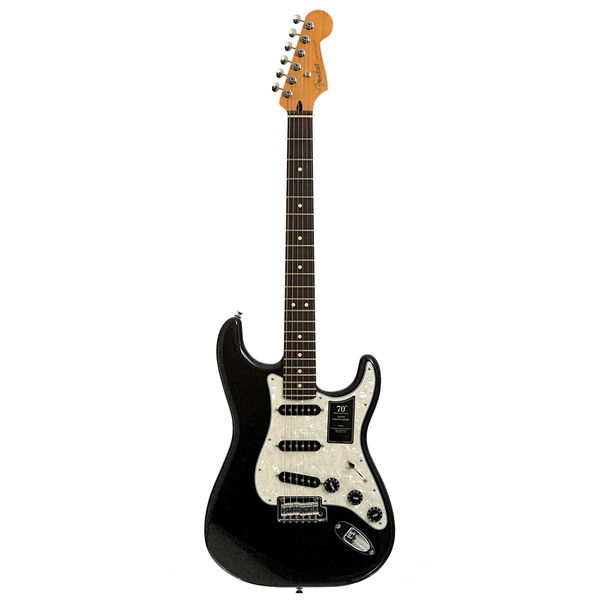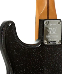 La Fender 70th Anniversary Player Stratocaster è una celebrazione dell’iconico design Stratocaster, combinando l’estetica classica con caratteristiche moderne per soddisfare le esigenze dei musicisti contemporanei. La finitura Nero non solo cattura l’attenzione con la sua luminosità cangiante, ma rende anche ogni strumento unico nel suo genere.