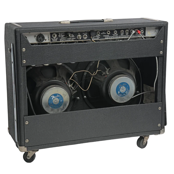 Il Fender Twin Reverb del 1977 è un amplificatore combo leggendario, rinomato per la sua potenza straordinaria e la chiarezza sonora impeccabile. Dotato di una configurazione a due altoparlanti da 12 pollici, offre 135 watt di pura potenza valvolare, garantendo un suono pulito anche a volumi elevati.