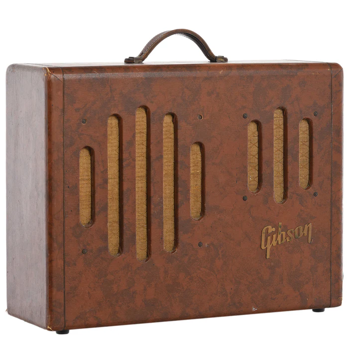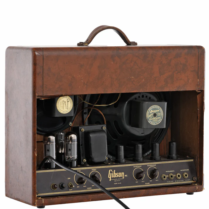Il Gibson GA-50 Combo Amp del 1951 è un’icona degli amplificatori valvolari vintage. Dotato di due altoparlanti Jensen originali (1×12″ + 1×8″), 18W di potenza con valvole 6L6 e una costruzione artigianale impeccabile, questo amplificatore offre un suono caldo e autentico. Restaurato professionalmente, è perfetto per musicisti e collezionisti esigenti