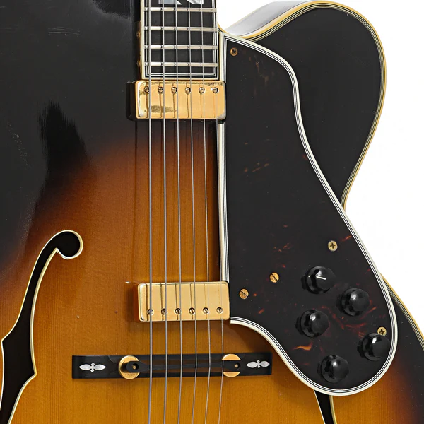 Il manico a 5 pezzi in acero e noce offre stabilità e una suonabilità eccezionale, mentre la tastiera in ebano con intarsi in madreperla aggiunge un tocco di eleganza. I due mini-humbucker flottanti originali forniscono una gamma tonale ricca e calda, ideale per il jazz e altri generi musicali.