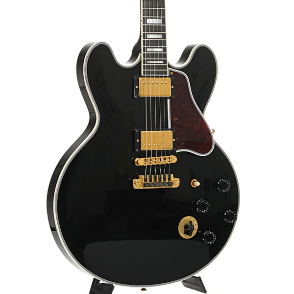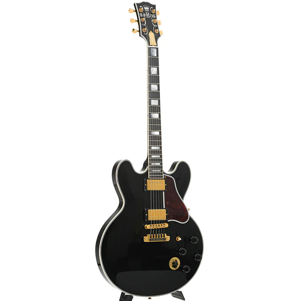 La Gibson Lucille del 2009 è una chitarra elettrica semi-hollowbody senza buche a “f”, finitura nera lucida e hardware dorato, progettata per offrire il suono distintivo di B.B. King.