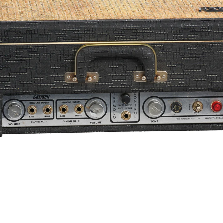 Il Gretsch 6161 Combo Amp del 1966 è un amplificatore valvolare che incarna l’estetica e il suono classici dell’epoca. Con una configurazione di due altoparlanti da 10 pollici, offre 17 watt di potenza valvolare, ideale per ottenere toni caldi e ricchi. Dotato di due canali indipendenti e un effetto tremolo distintivo, questo amplificatore rappresenta una scelta eccellente per i musicisti che desiderano un suono vintage autentico.