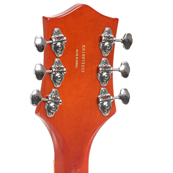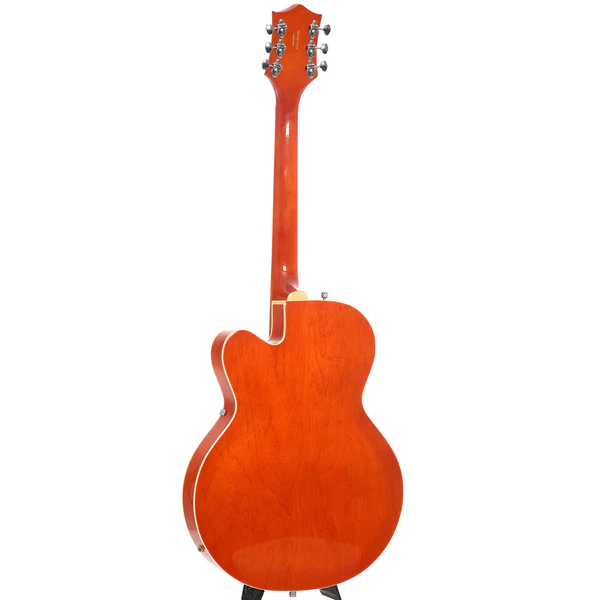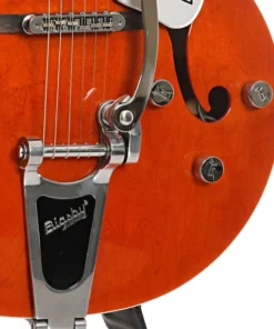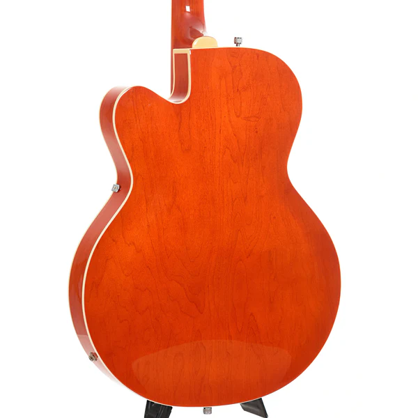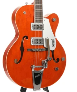 La Gretsch G5120 Hollowbody del 2010 è una chitarra elettrica che combina estetica vintage e prestazioni sonore di alto livello. Con il suo corpo cavo in acero, manico in acero e tastiera in palissandro, è equipaggiata con pickup TV Jones Filter’Tron e ponte Adjust-o-matic, completata da un elegante tremolo Bigsby.