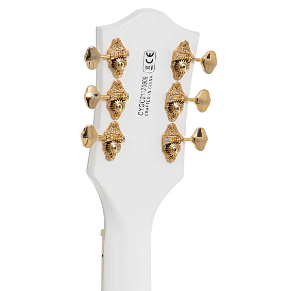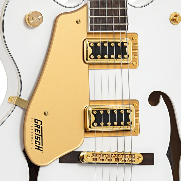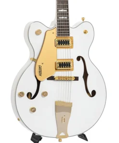La Gretsch G5422GLH Electromatic Classic Hollow Body Double-Cut per mancini incarna l’essenza del suono e dello stile Gretsch degli anni ’50 e ’60. Il corpo in acero laminato, con perimetri vintage e archi raffinati, è dotato di un nuovo sistema di rinforzo a blocchi a traliccio che riduce il feedback indesiderato e migliora l’attacco, la focalizzazione e il sustain del suono. I pickup FT-5E Filter’Tron™ conferiscono a questa chitarra una voce esplosiva, con un punch corposo, un classico jingle e una presenza migliorata, offrendo chiarezza e definizione delle note. Il manico in acero con profilo “C” classico e tastiera in laurel garantisce una suonabilità confortevole e prestazioni ottimali. Il layout dei controlli è stato aggiornato per una maggiore versatilità, includendo un volume master con circuito treble bleed, tono master, controlli di volume individuali per ciascun pickup e un selettore a tre posizioni. Dettagli come i fori a “F” sovradimensionati, il binding multi-strato, la paletta più piccola ispirata ai modelli G6120 degli anni ’50, le meccaniche vintage open-back, il capotasto Graph Tech® NuBone® e gli intarsi Pearloid Hump Block aggiungono un tocco di classe. Il ponte Adjusto-Matic™ fissato con base in laurel e la cordiera Gretsch® G-Cutout completano l’insieme, mentre la finitura Snowcrest White con hardware dorato e battipenna dorato conferisce a questa chitarra un aspetto elegante e distintivo. La Gretsch G5422GLH è lo strumento ideale per i chitarristi mancini che cercano un suono hollow body autentico e uno stile senza tempo.