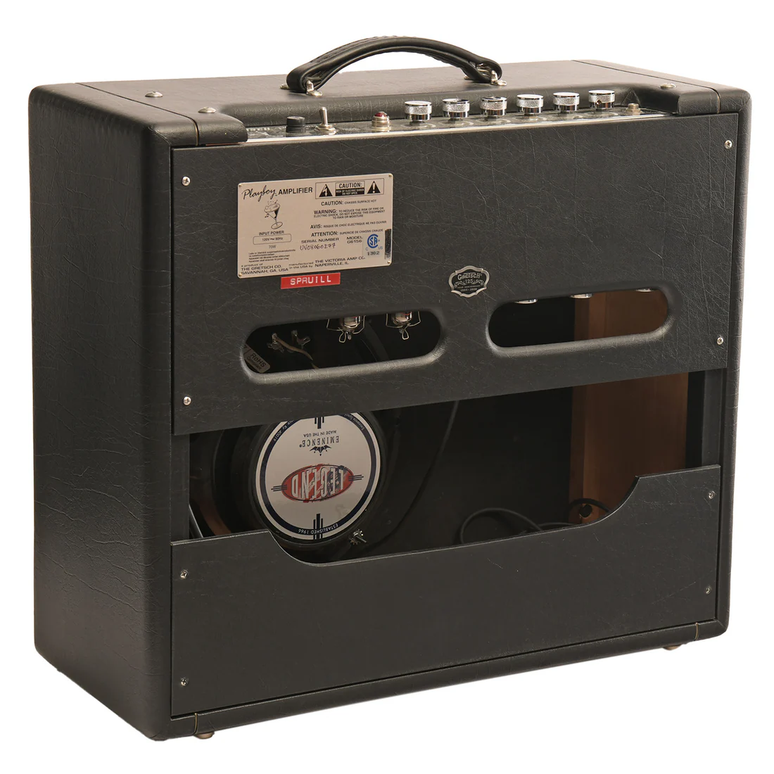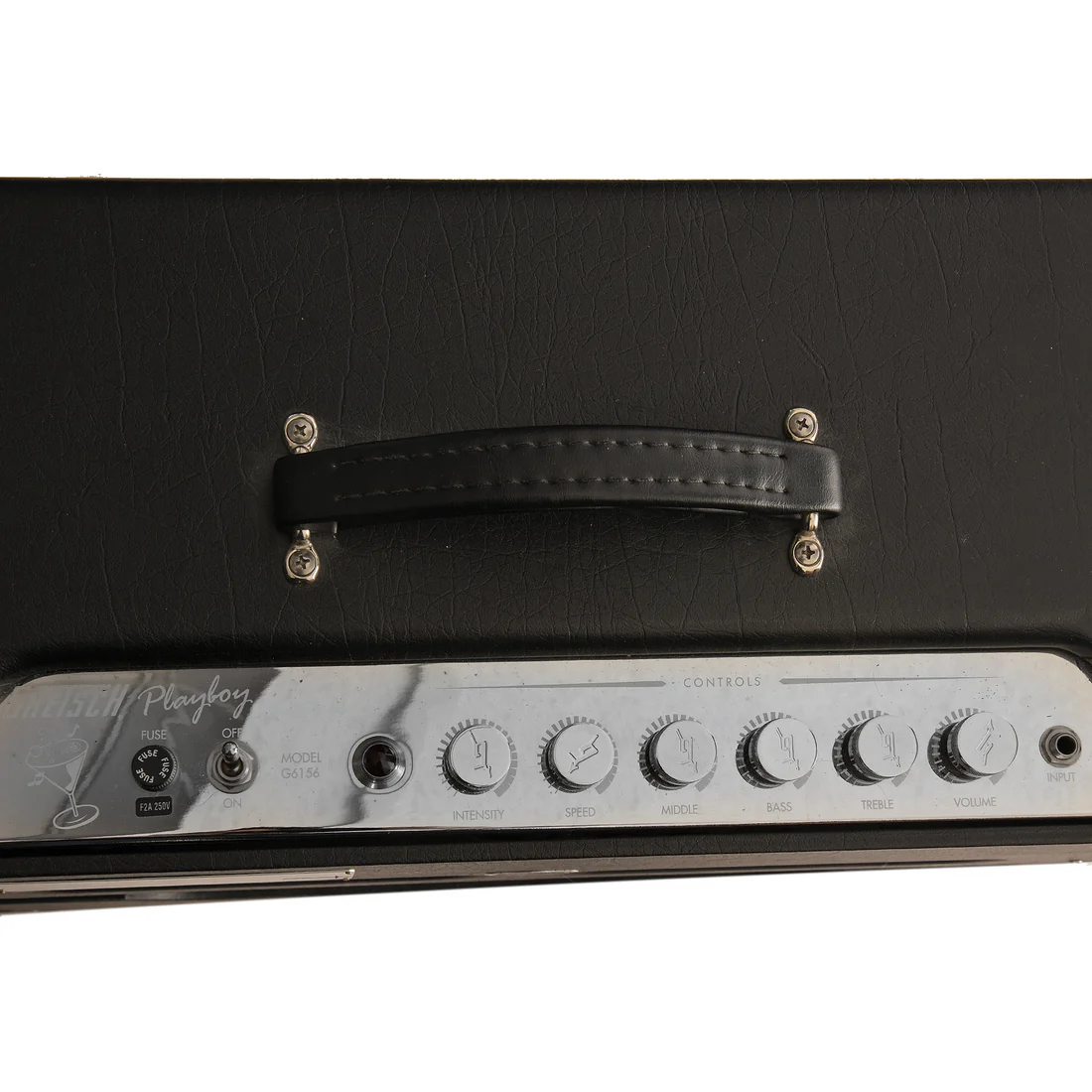 Il Gretsch G6156 Playboy Combo Amp del 2006 è un amplificatore boutique realizzato negli Stati Uniti dalla Victoria Amp Company per Gretsch. Con una potenza di 15 watt, offre un suono caldo e ricco, ideale sia per tonalità pulite che per una distorsione morbida e musicale. Il tremolo integrato aggiunge profondità e movimento al suono, controllabile tramite il footswitch incluso. Il design distintivo a due toni, con finiture in vinile Space Age e pannello di controllo cromato, richiama l’estetica classica di Gretsch, rendendo questo amplificatore non solo uno strumento sonoro di alta qualità, ma anche un pezzo da collezione per gli appassionati del marchio.