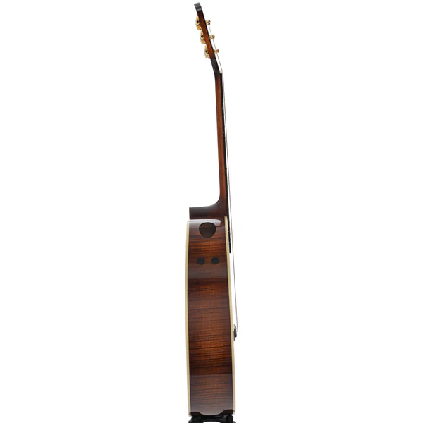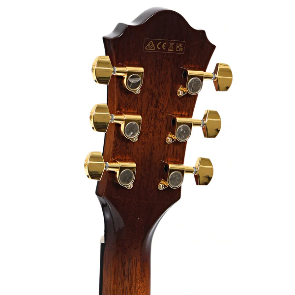 Esteticamente, la chitarra si distingue per la rosetta in abalone e legno con binding, gli intarsi a blocchi in acrilico e abalone e le meccaniche dorate die-cast con rapporto 18:1, che non solo aggiungono un tocco di eleganza, ma assicurano anche una stabilità dell’accordatura impeccabile.