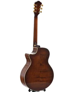 La Ibanez AE340FMH rappresenta una fusione perfetta tra estetica raffinata e prestazioni acustico-elettriche di alto livello. Con un top in okoume fiammato massello e fondo e fasce in okoume fiammato, questa chitarra offre un suono caldo e bilanciato, con bassi profondi, medi definiti e alti cristallini.