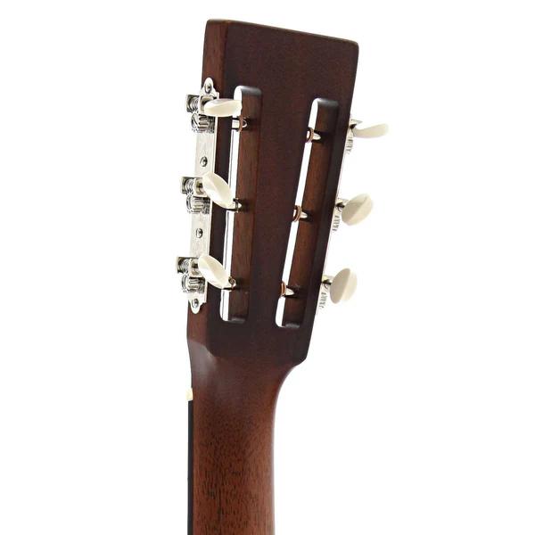 Le meccaniche di accordatura in nichel con bottoni in ivoroide offrono un’affidabilità eccezionale, mentre la sella in osso e i perni del ponte in ebano nero contribuiscono a una maggiore precisione nella resa tonale. La finitura satinata su tutte le superfici dona alla chitarra un aspetto raffinato e la rende resistente all’usura.
