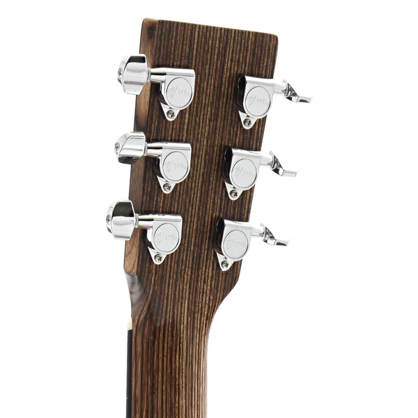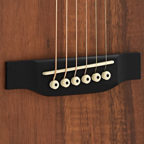 Il corpo della chitarra è realizzato con HPL (High Pressure Laminate) con finitura testurizzata in koa hawaiana, che dona un aspetto elegante e una tonalità calda e vibrante. La costruzione solida del manico, unita al pattern di bracing “X” modificato, assicura una risposta dinamica e una durata superiore, mentre il materiale del ponte e della tastiera in Richlite garantisce un tocco morbido e un’intonazione precisa.