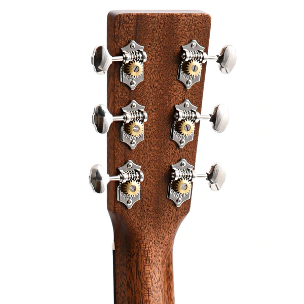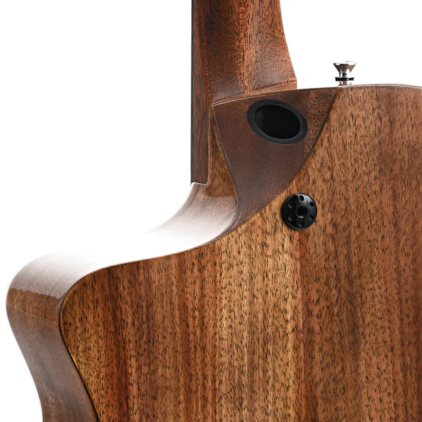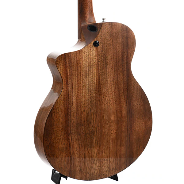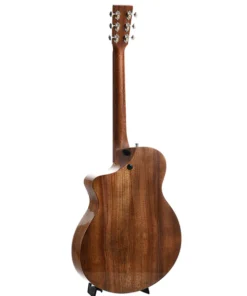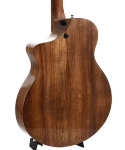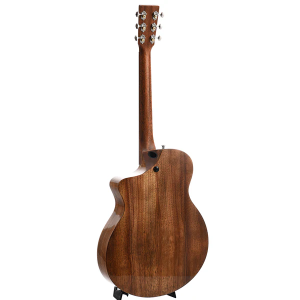 Il top in abete fornisce un suono diretto e dinamico, mentre il fondo e le fasce in veneer fine di koa aggiungono calore e profondità tonale. Questa combinazione di legni assicura una proiezione sonora potente e una risposta bilanciata su tutte le frequenze.