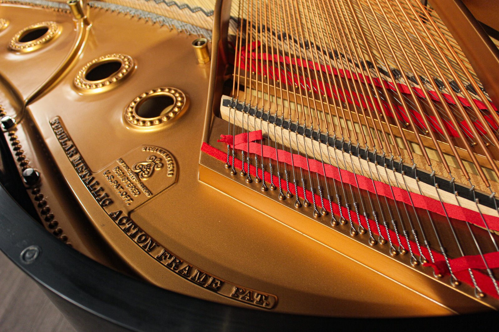 Il restauro ha incluso l’installazione di una nuova tavola armonica e di un nuovo blocco dei piroli, garantendo una risonanza e una stabilità dell’accordatura ottimali. Le corde e i piroli di accordatura sono stati sostituiti, mentre la meccanica è stata aggiornata con martelletti, steli, flange e wippen nuovi originali Steinway, assicurando una risposta al tocco precisa e sensibile.