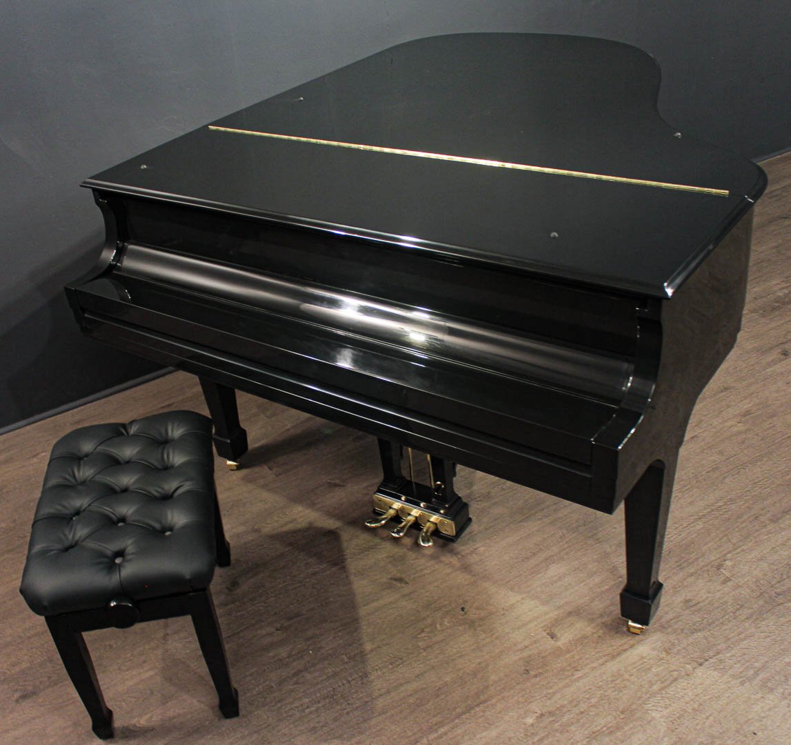 La finitura in ebano lucido conferisce allo strumento un aspetto audace e contemporaneo, aggiungendo un tocco di eleganza a qualsiasi ambiente. La qualità sonora è calda, risonante e potente, adatta a una vasta gamma di stili musicali e generi.